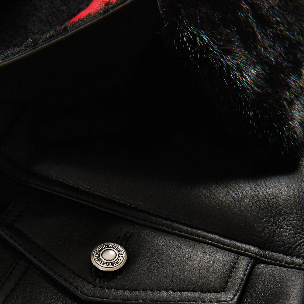 Men Black Airforce B3 Aviator Flight Fur Sheepskin RAF Shearling Leather Jacket