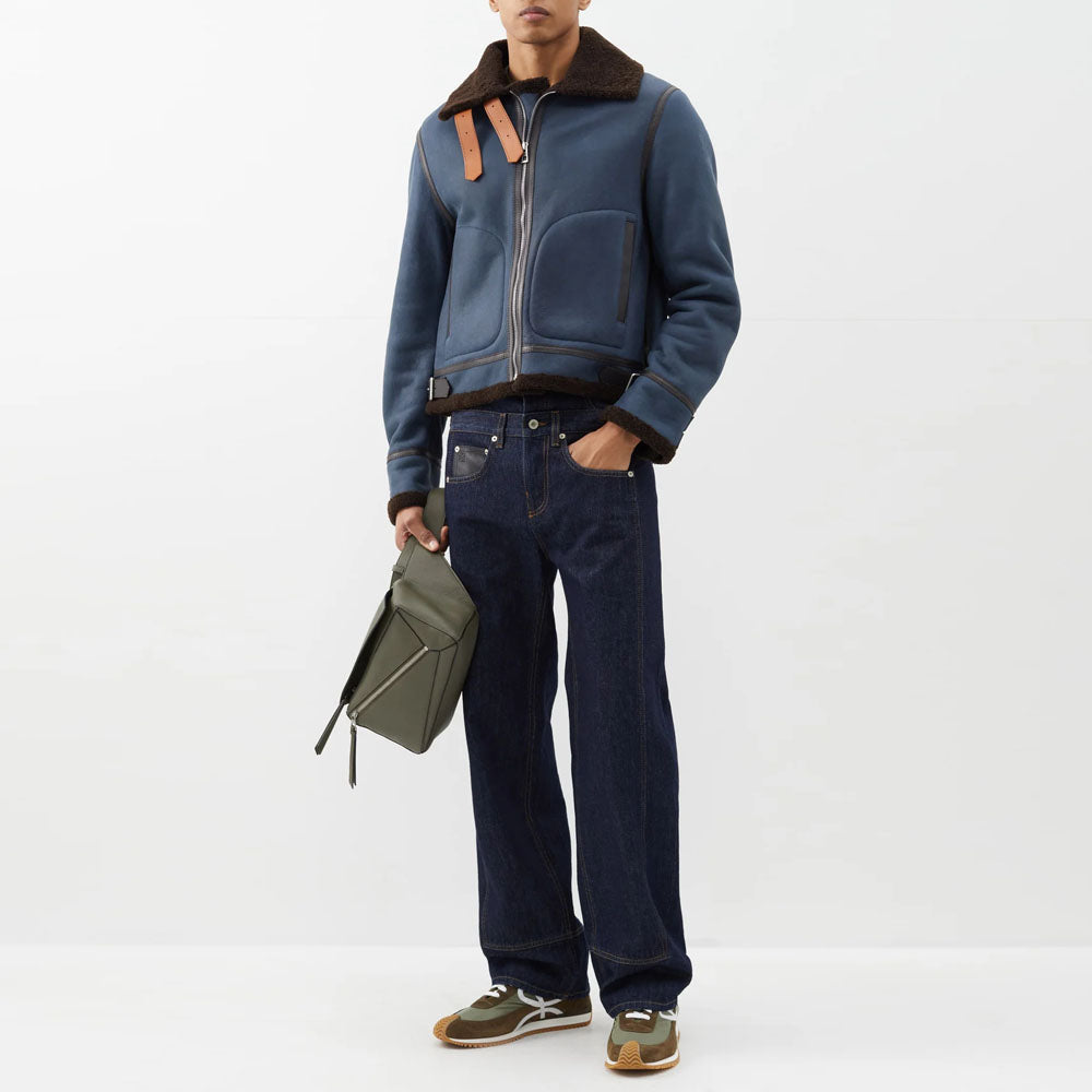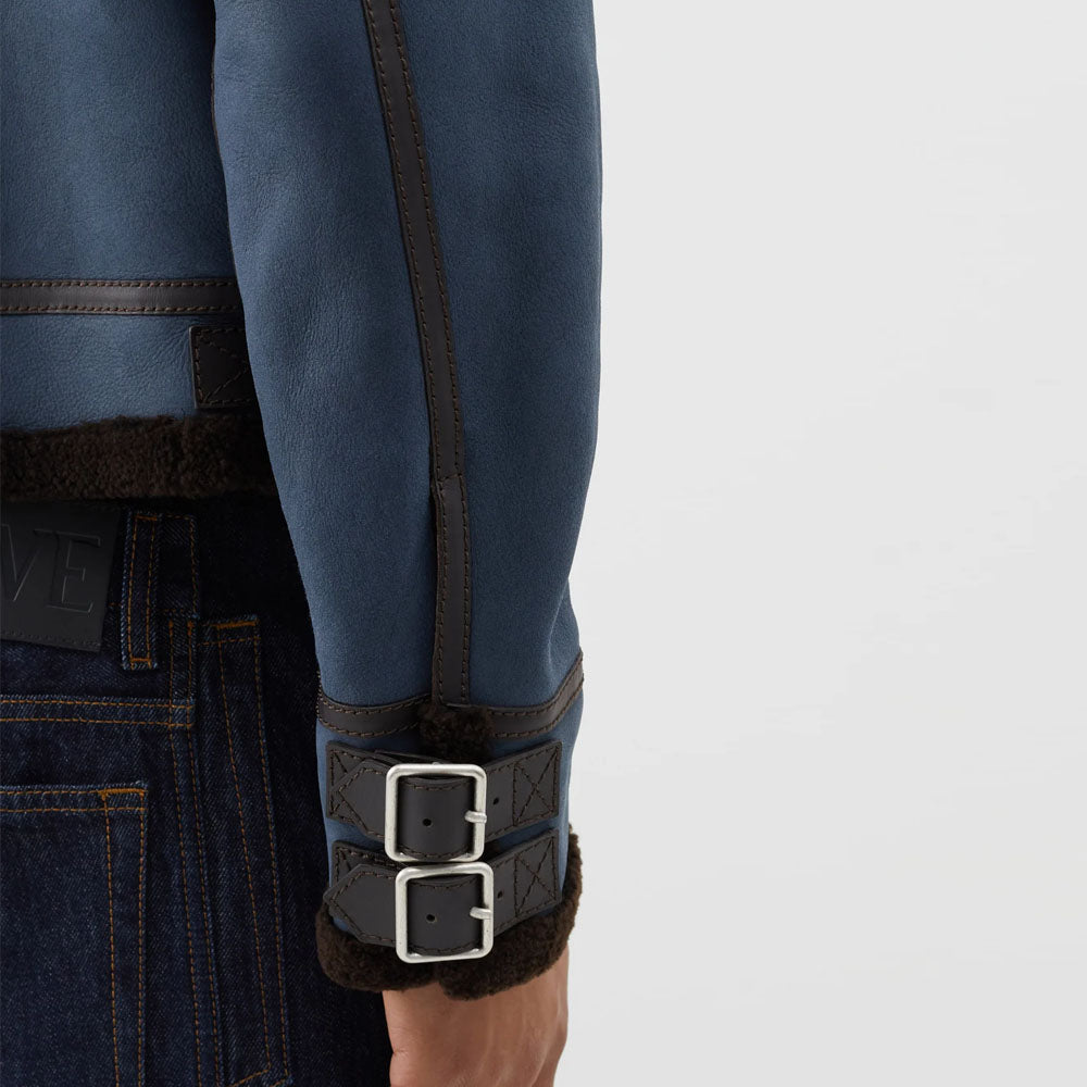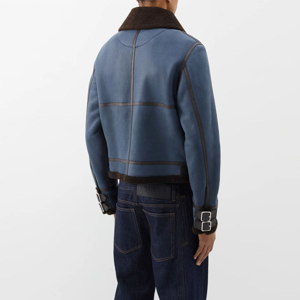Men Blue B3 Pilot Aviator Sheepskin Flight Shearling Lined Leather Jacket